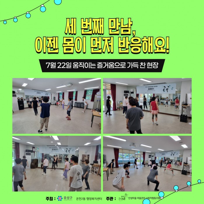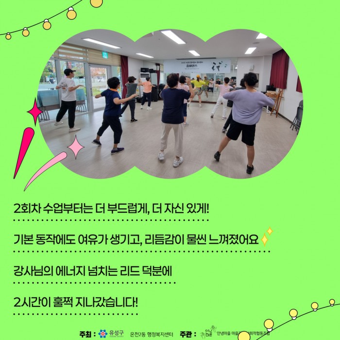 우리의 몸과 마음은 음악에 맞춰 건강하게 움직였습니다.