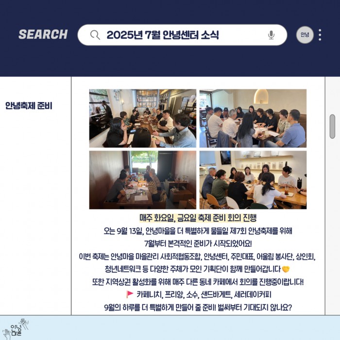 - 그리고 다가올 제7회 안녕축제 준비 현장까지!