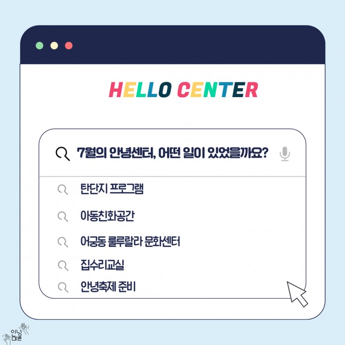 안녕센터의 7월 활동을 카드뉴스로 만나보세요.