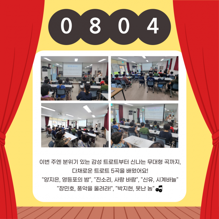 이제 시작 전부터 박수소리가 먼저 터지는 어궁동 룰루랄라 문화센터 노래교실