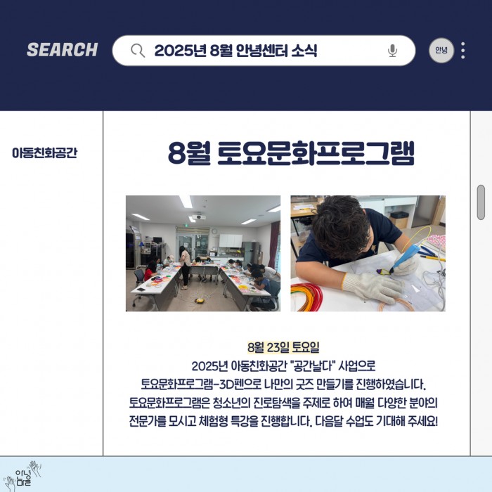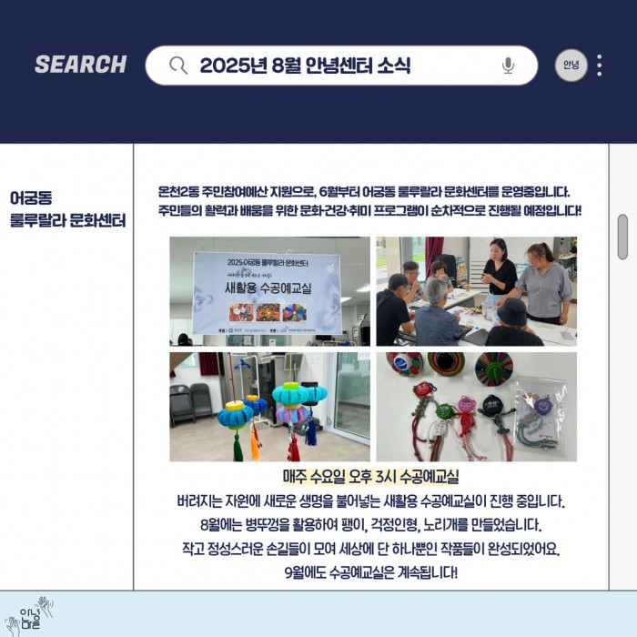 안녕센터는 주민들과 함께 다양한 프로그램을 진행했습니다.