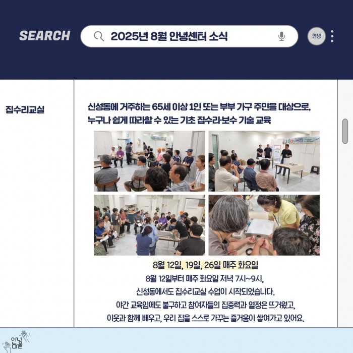 또한 어은동에서 많은 사랑을 받은 집수리교실이 신성동에서도 시작되었어요!