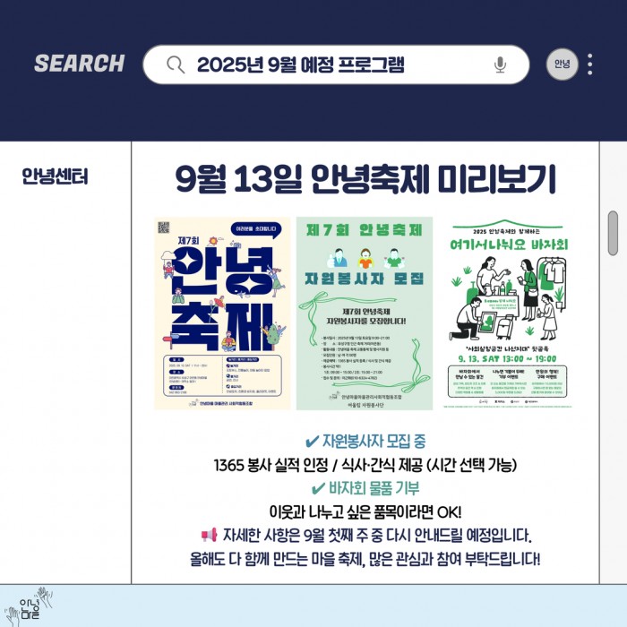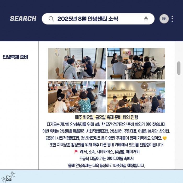 다가올 9월 13일 안녕축제를 준비하는 회의도 이어졌습니다.